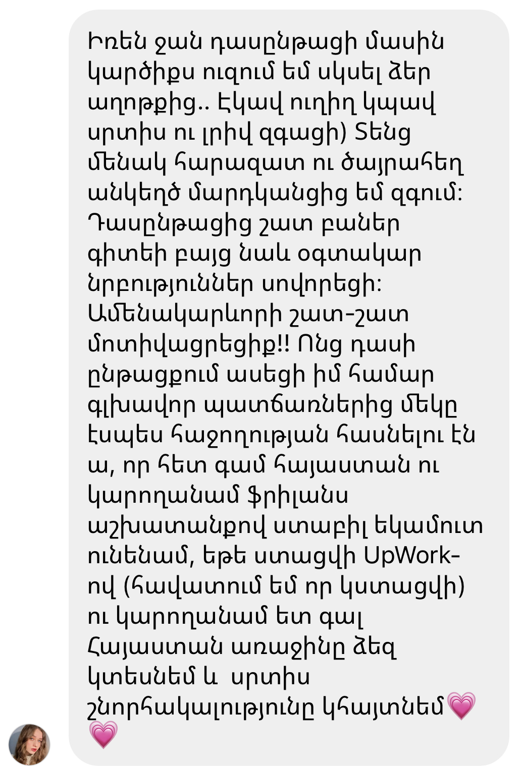Ցանկացած տեսադաս Ձեզ տալիս է լիարժեք գիտլիքներ՝ սկսելու 0-ից և հասնելու լիարժեք եկամտաբերության։